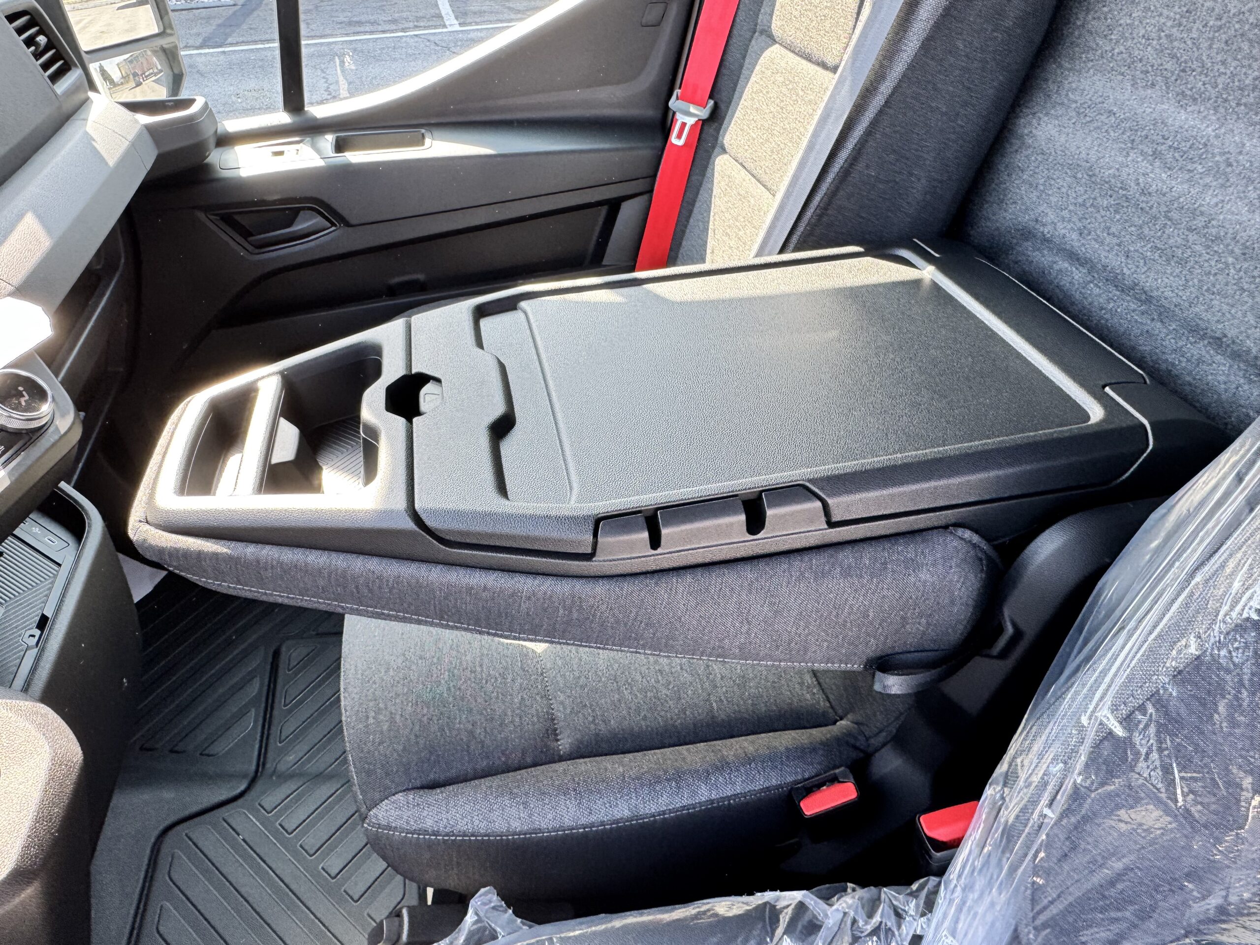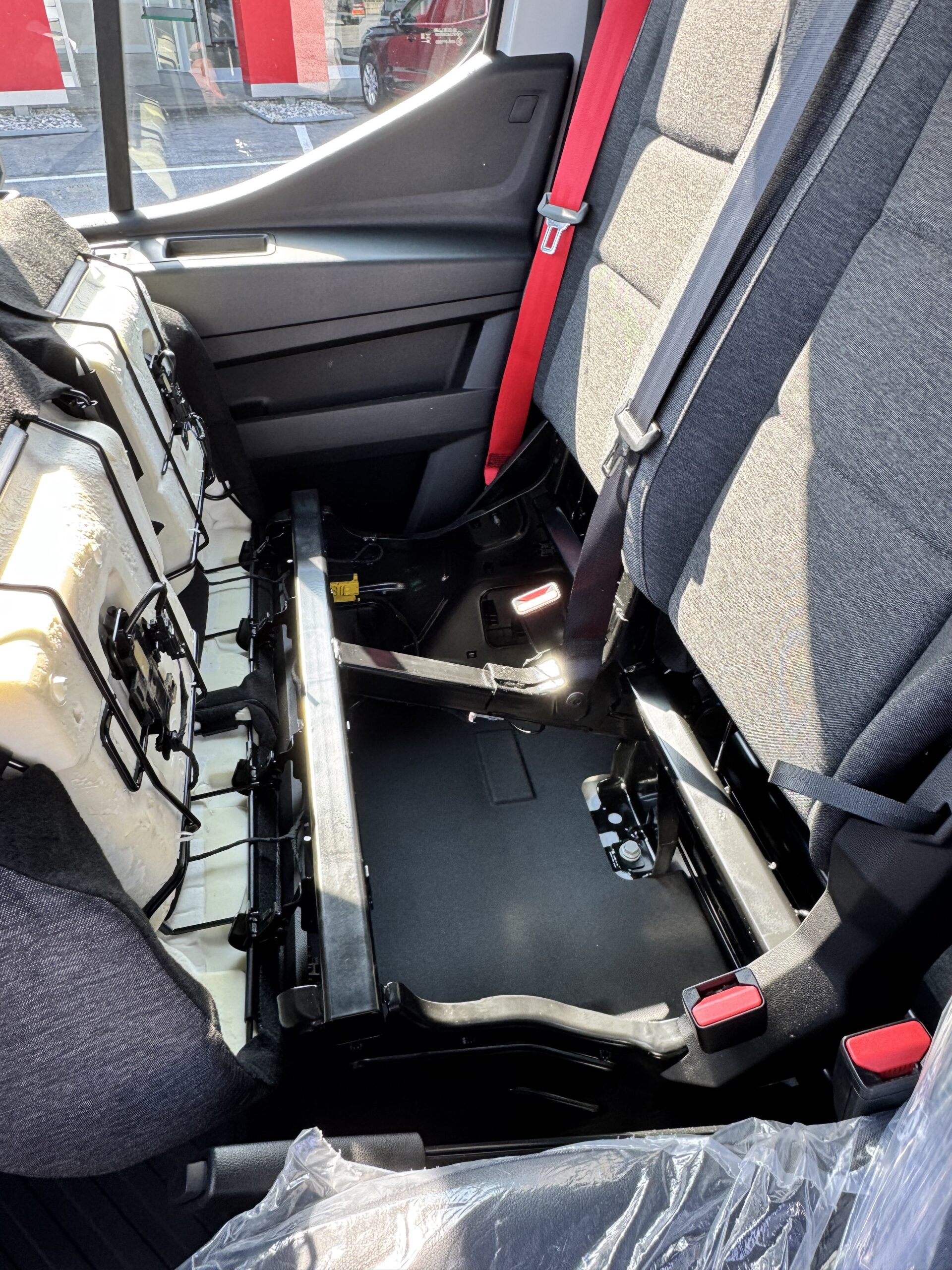 PANCA PASSEGGERI CON PORTAOGGETTI SOTTO LA SEDUTA + SEDILE CENTRALE RIPIEGHEVOLE PER TAVOLINO E PORTA BEVANDE
